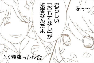 体験入店失敗!? 解説 当店では、テクニックだけでなく、お客様に対する一生懸命さや、気づかいのできる心などを、とても大切にしています。「男性経験が少なく、自分には上手く出来ないのではないか?」そんな不安を抱いている女の子は、その時点で合格。自分のことよりもお客様の立場に立って考えることのできる人だからです。当店には、女の子が一生懸命やった結果を、叱るようなスタッフはいません。興味のある方は是非、体験入店をしてみてください。体験と言っても、お給料は入店後と同じです。もちろん、体験だけでも大歓迎です☆ >> 体験入店について <前 | マンガ一覧 | 次>